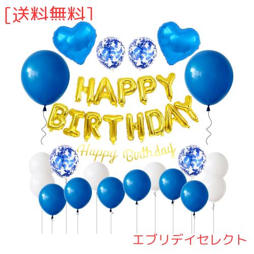 GRESATEK 誕生日 バルーン 飾り付けセット ハッピー バースデー HAPPY BIRTHDAY ハート 紙吹雪風船 両面テープ リボン付き ブルー ゴール