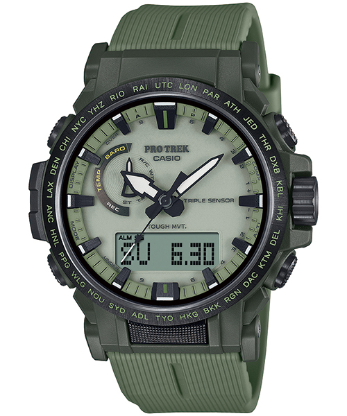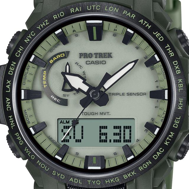 自然を愛する人の本格アウトドアギアPRO TREKから、全面蓄光ソーラー文字板を採用した「PRW-61LD」です。