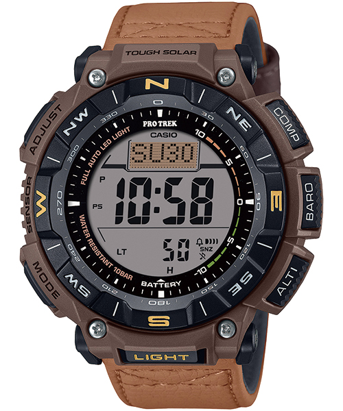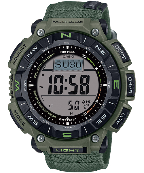 自然を愛する人に向けた本格アウトドアギアPRO TREKより、環境負荷低減への貢献が期待される素材を採用したソーラー搭載モデル「PRG-340」です。