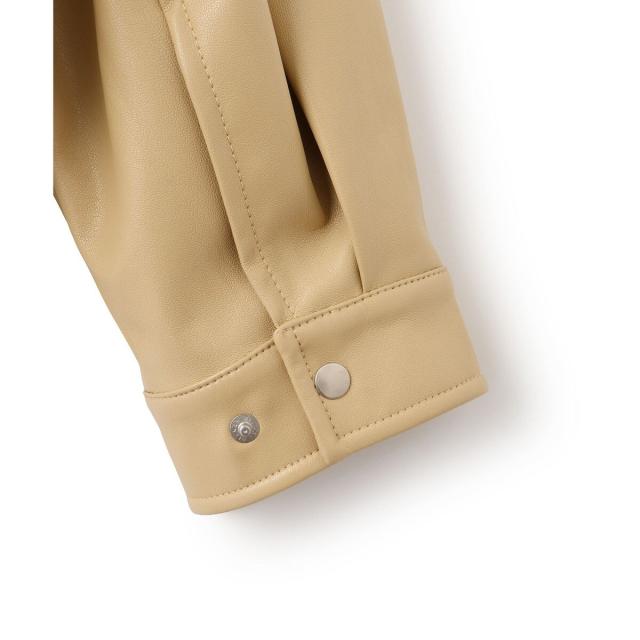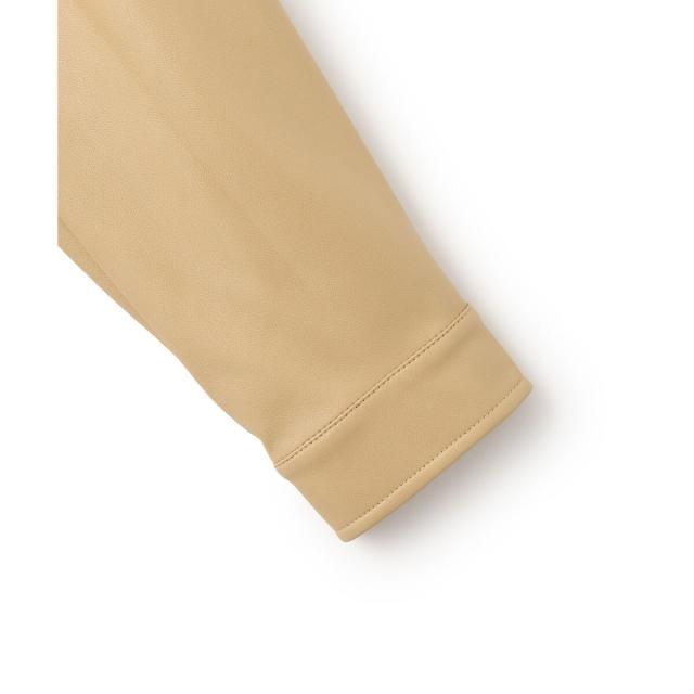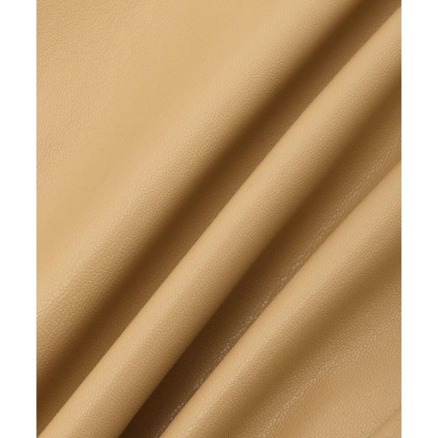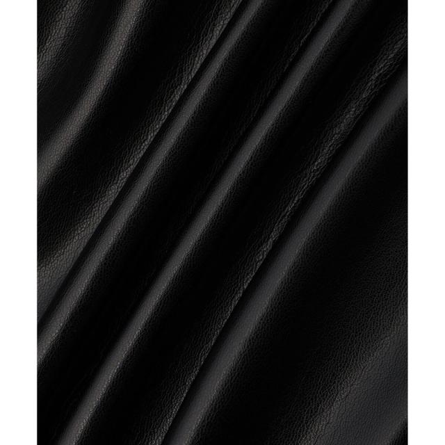 合成皮革の中では比較的薄手で軽量なものを選び、ハードすぎずフェミニンに着こなせるフェイクレザーを使用。