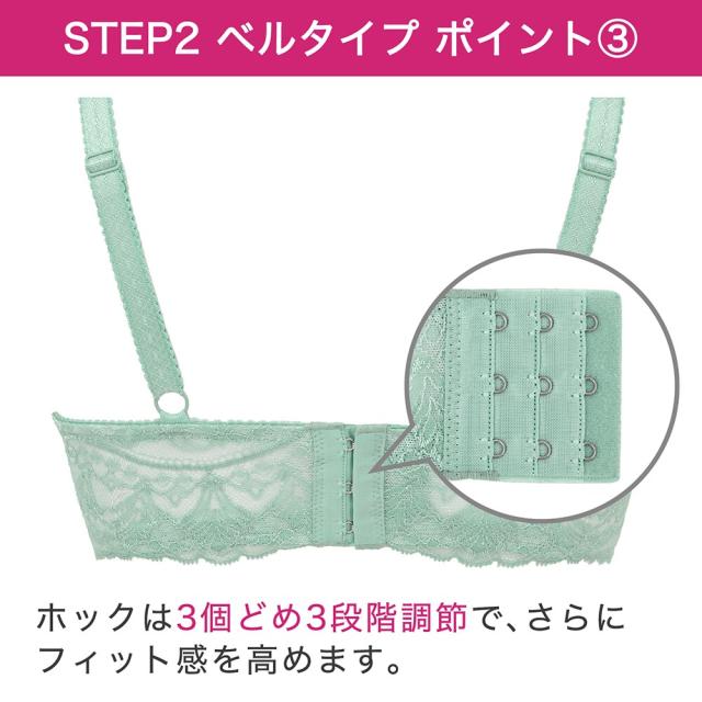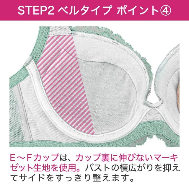 STEP2「ベルタイプ」はワイヤー輪郭と乳間が狭く、バストを中心に寄せる設計です。