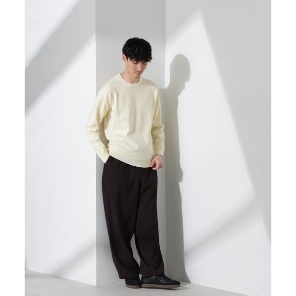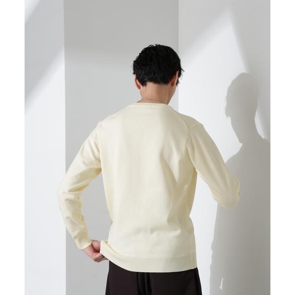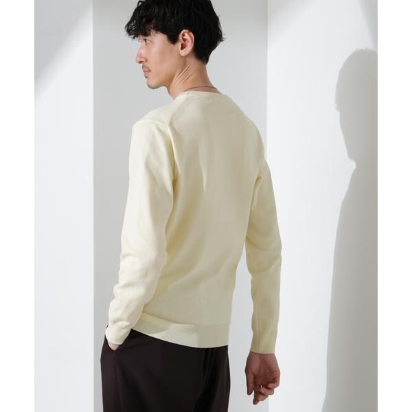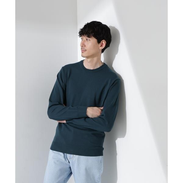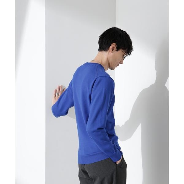 春先に向けた汎用性の高いベーシックなニットトップス。表側には強撚糸の綿アクリル糸を使用し、裏側には140Dのポリエステル糸をプレーティング編みをし目面をキレイに仕上げた1着。鮮やかなカラー展開で春ムードを高めるアイテムです!