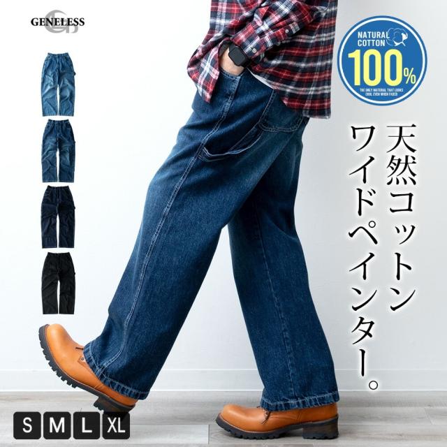 ジェネレス(geneless)/ワイドパンツ メンズ ペインターパンツ デニム 綿100 ゆったり ワイド パンツ ジーパン