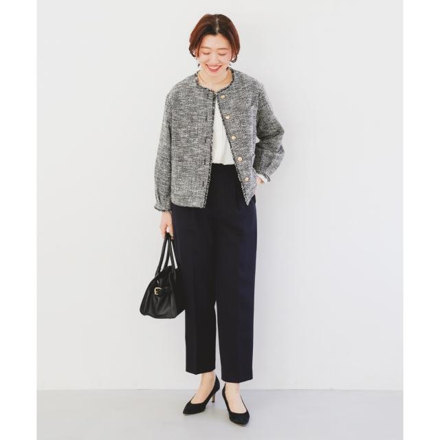 着こなし次第でカジュアルなトップスにも馴染むアイテムです。