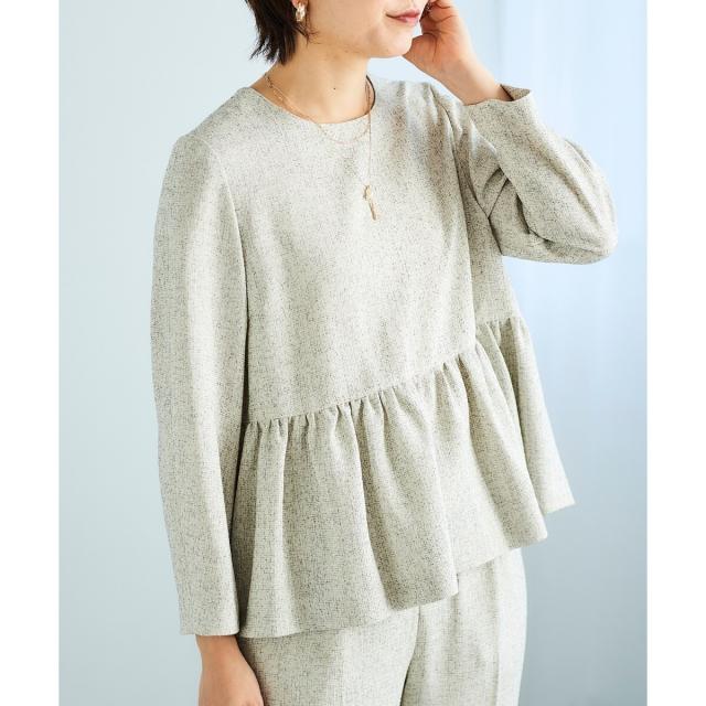 薄手のツイード素材を使用したペプラムデザインのブラウスです。
