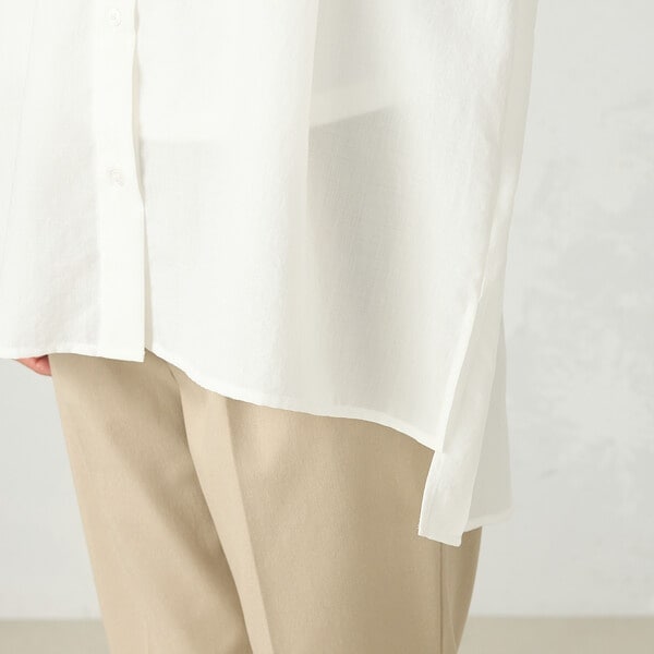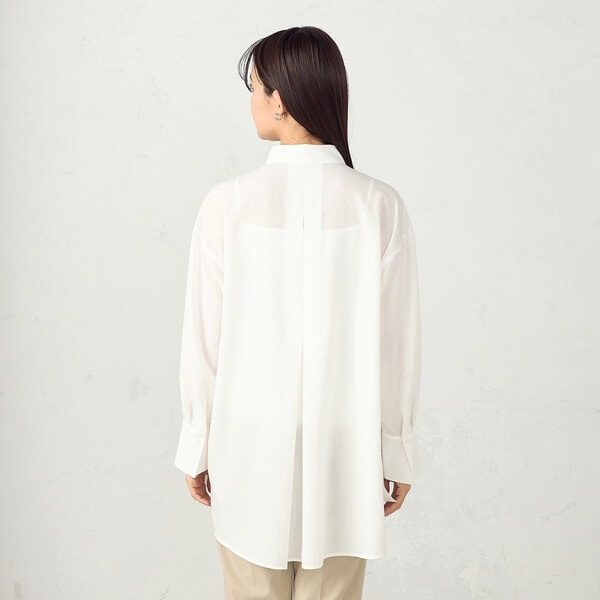 後ろに大きくタックをあしらったロング丈のシャツです。