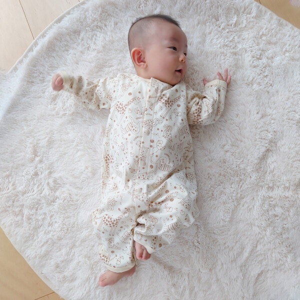 股下のスナップ釦をかけ換えると、新生児型とカバーオール型の2通りの形になり、