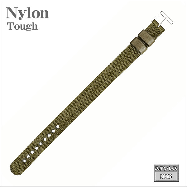 時計ベルト 時計バンド ナイロンバンド 時計際幅 18mm カーキ 引き通しタイプ 表材ヘリ返し加工 ステンレス美錠 バネ棒2本付き ネコポス対応品