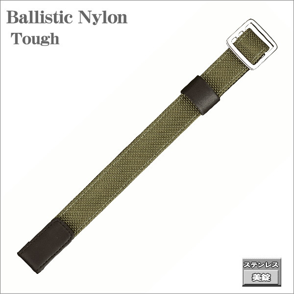 マルマン 時計ベルト 時計バンド 時計際幅 18mm カーキ 高強度バリステックナイロン 引き通しタイプ ステンレス美錠 ばね棒2本付き ネコポス便対応品