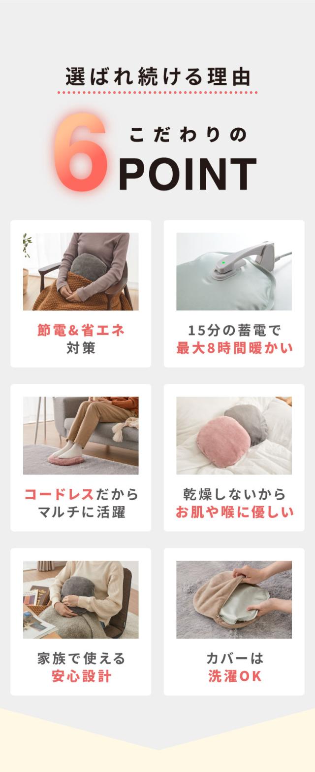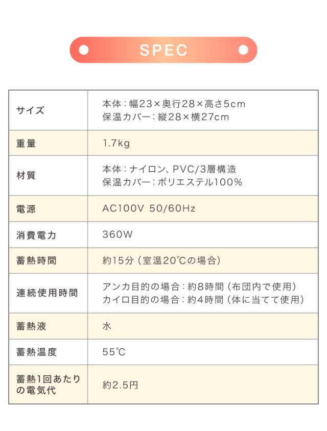 面倒なお湯の入れ替えは一切不要で、15分間蓄熱するだけで最長8時間も暖かさが持続します。