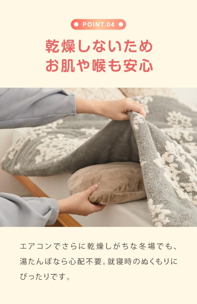 フランネルのカバーならではの滑らかな素材で肌触りもよく、ソフトな心地よい暖かさを体感できます。