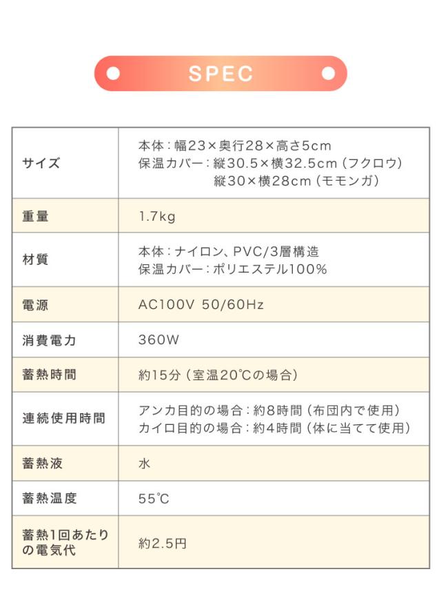 (本体)幅23x奥行28x高さ5cm、(保温カバー)縦30.5x横32.5cm(FK)、縦30x横28cm(MM)