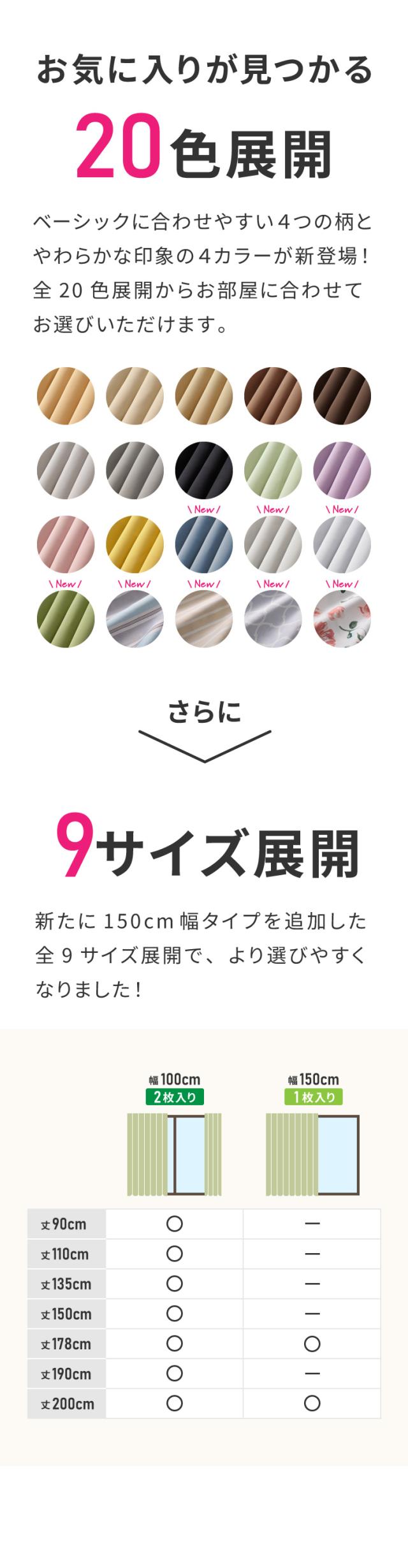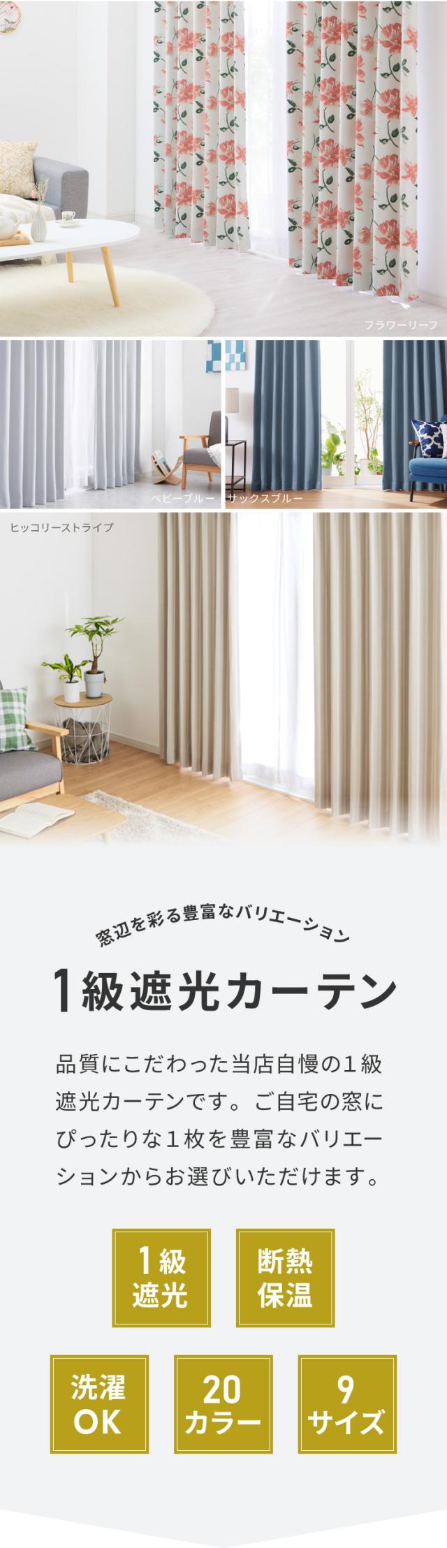 完全遮光/2枚セット | 完全遮光/軽量タイプ/2枚セット | 1級遮光/2枚セット | 1級遮光/防炎/2枚セット |