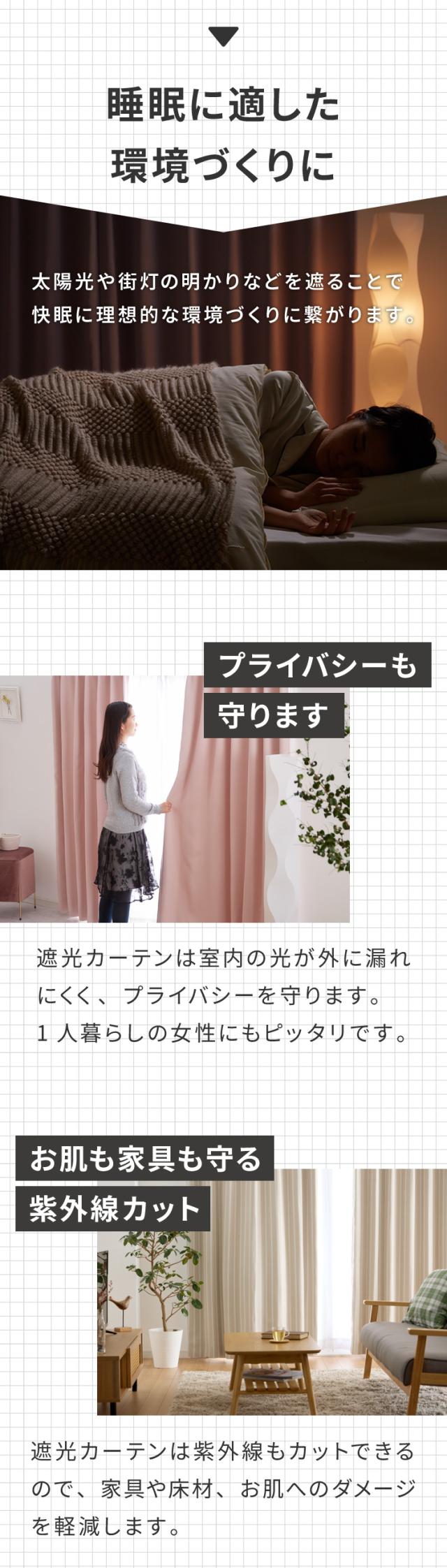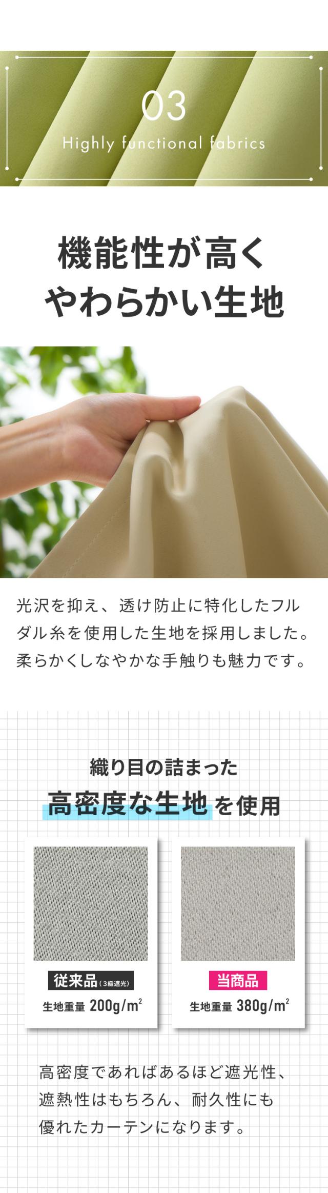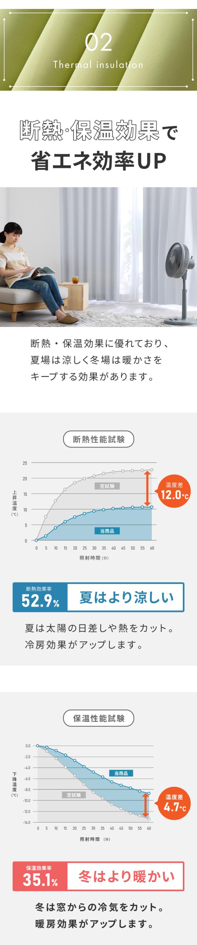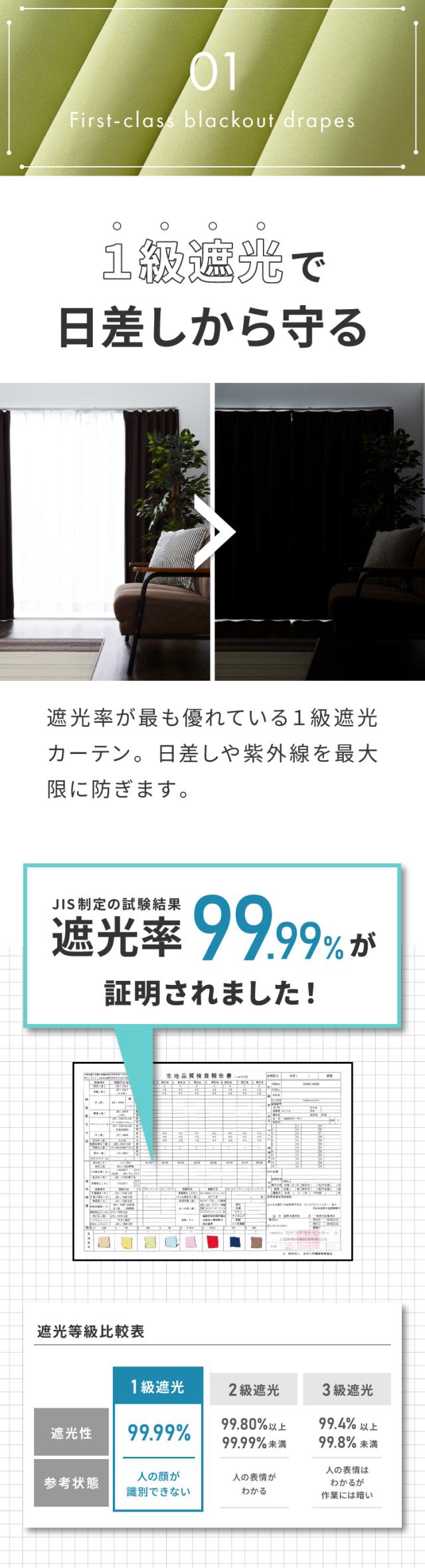 強い日差しを遮る1級遮光の生地を使用しています。※柄物は遮光等級2級