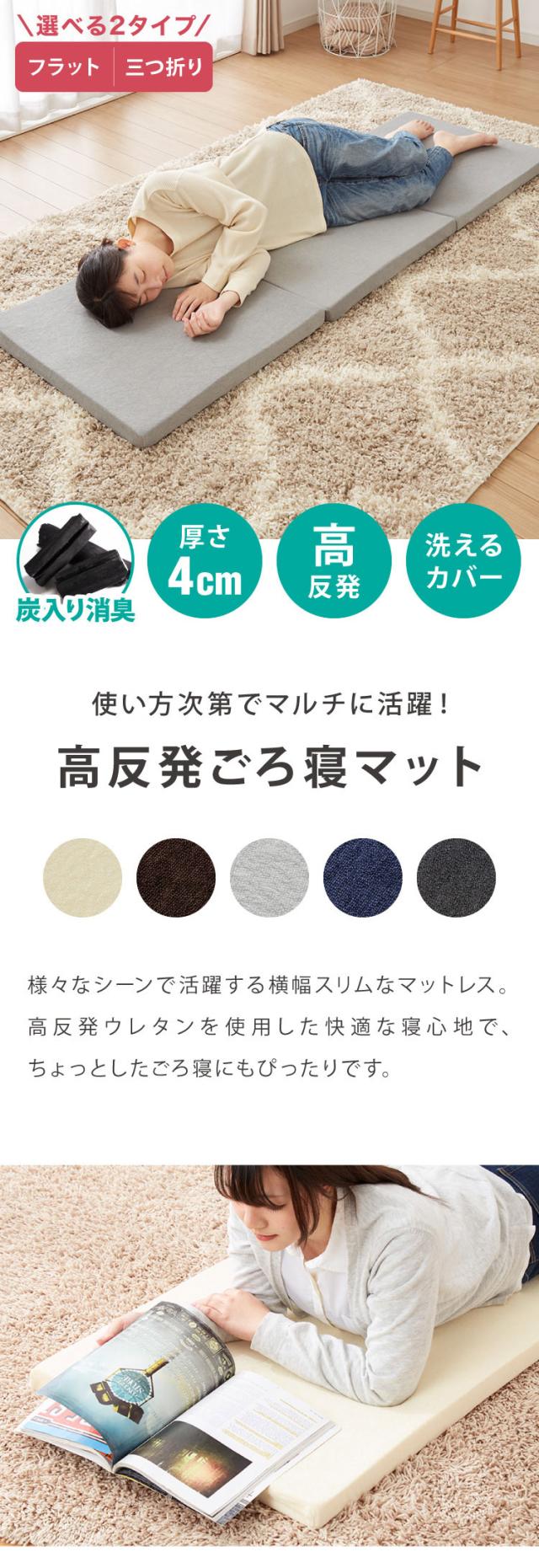ごろ寝マット 折りたたみ 3つ折り 高反発 抗臭 長座布団 厚さ4cm ヨガマット ストレッチ マットレス マット 車中泊 キャンプ お昼寝マット 洗える カバー付き ごろ寝 布団 来客 ベッド【送料