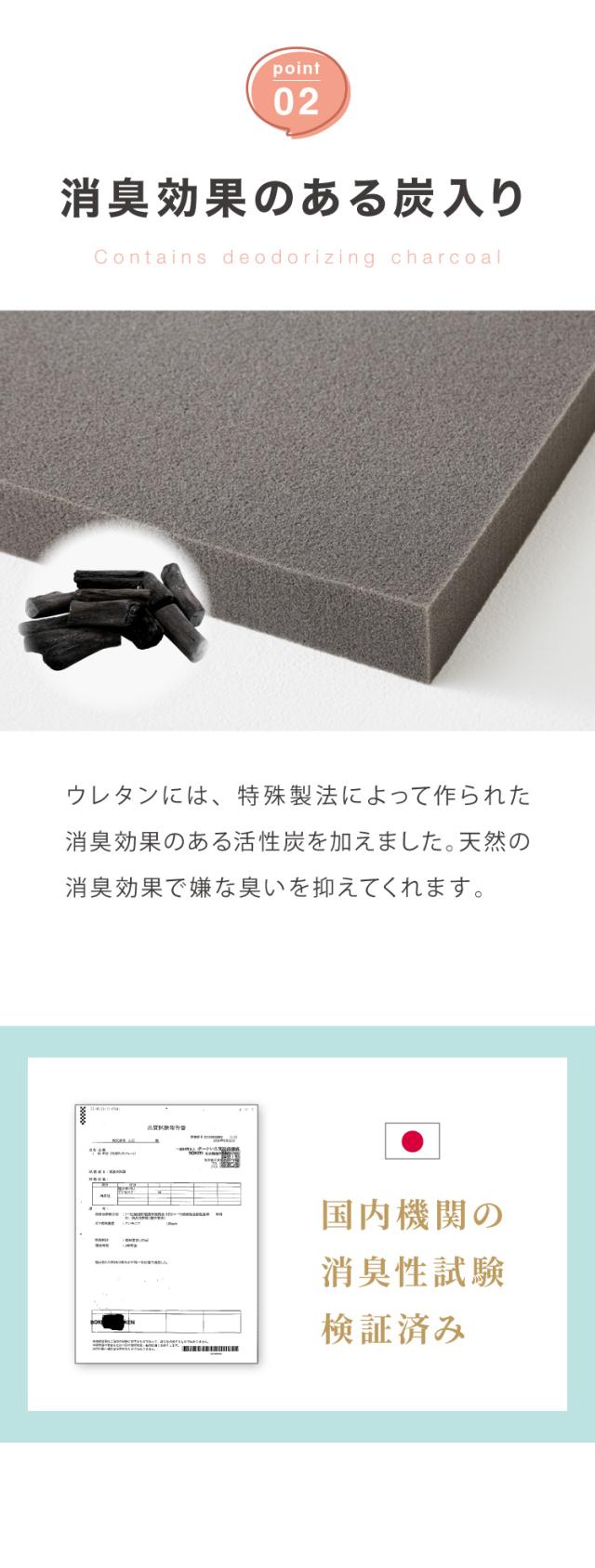 ・炭入りウレタンで抗臭効果があります。