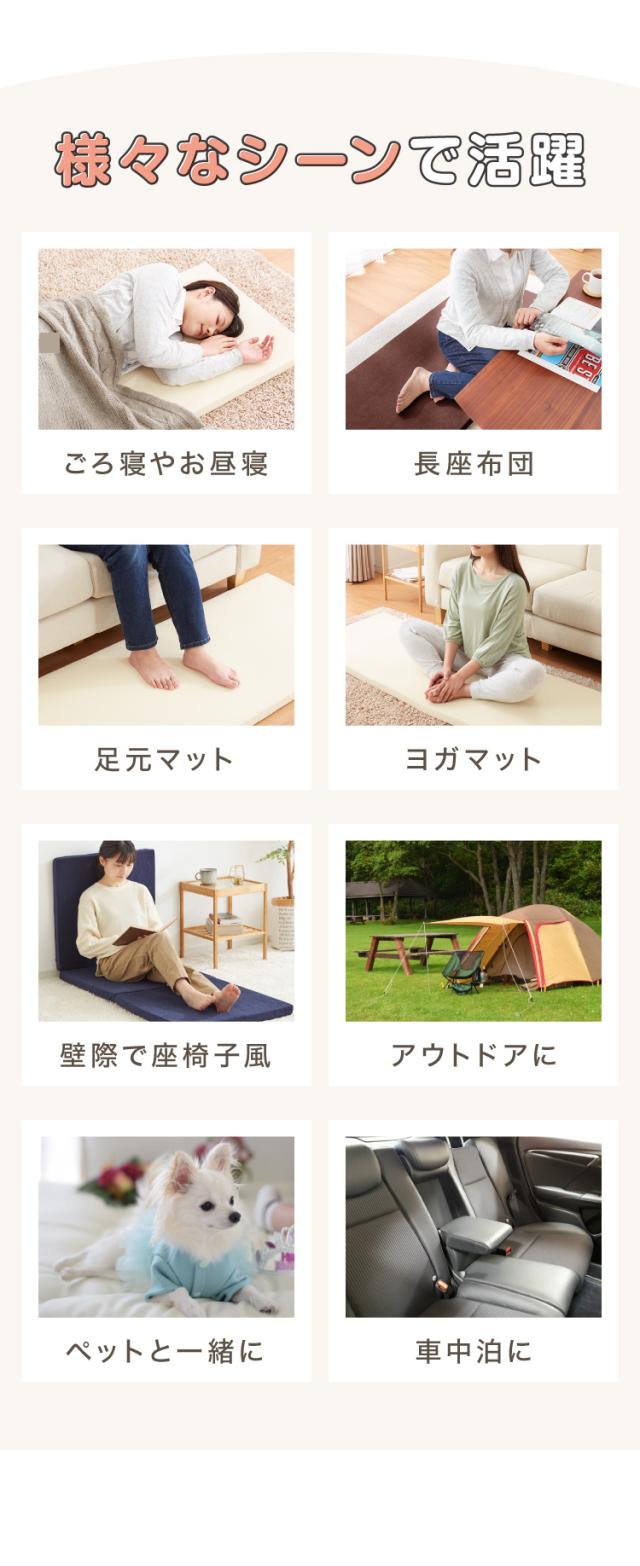ごろ寝マット、お昼寝マット、車中泊グッズ、キャンプグッズ、ヨガ、宅トレ、筋トレ、抗臭、洗えるカバー、圧縮梱包、ロングシート、ピラティスマット、持ち運び、持ち運び可、座布団、座椅子、赤ちゃん、来客用ベッド、リビング、子ども、簡単、プレイマット、車、車内、カバー、折りたたみ式、マットレス