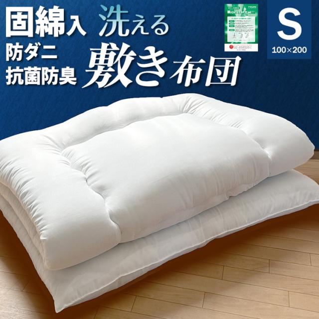 敷布団 日本製 抗菌 防ダニ 防臭 シングル 100×200cm 清潔 洗える 抗菌防臭加工 帝人 テイジン TEIJIN へたりにくい ピーチスキン加工 ホワイト ポリエステル 洗濯可能 寝具 布団【送料無料】