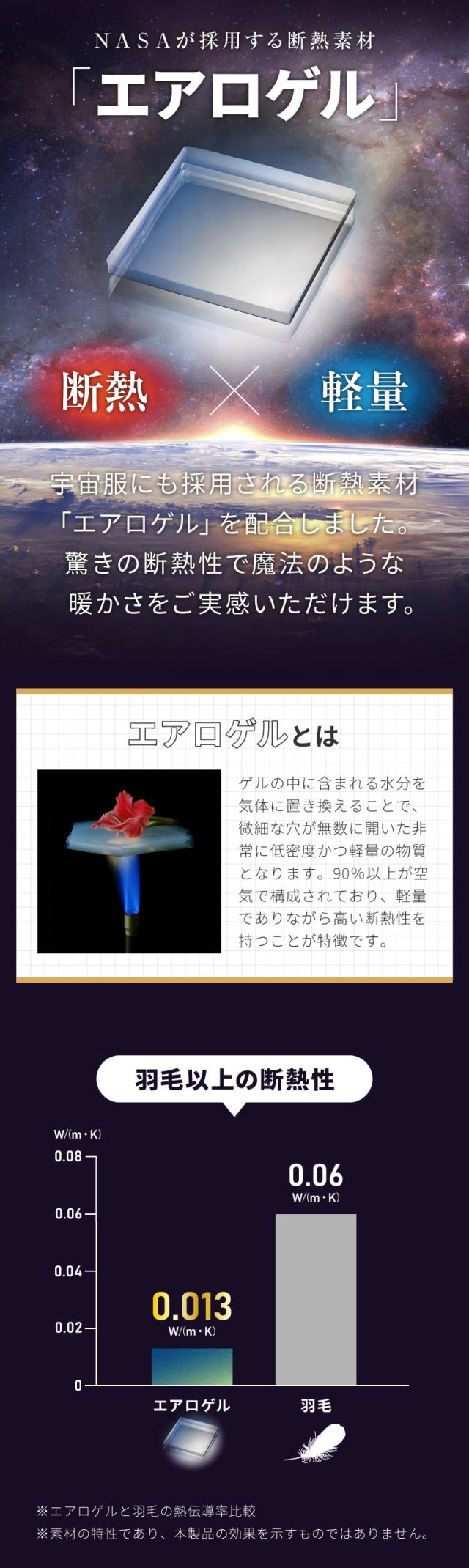 宇宙服素材"エアロゲル"繊維を使用した4層毛布。