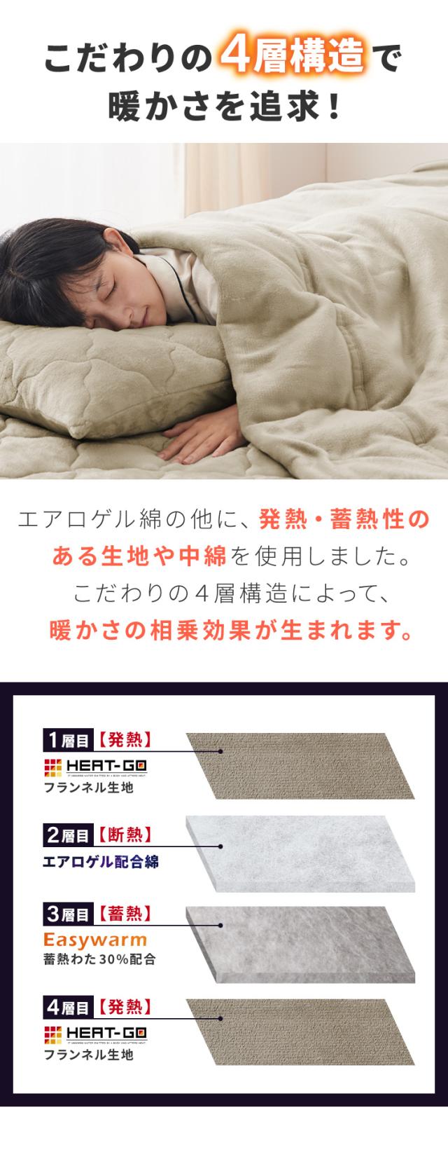 側生地に吸湿発熱生地のHEAT-GOフランネル生地を使用して保温力が格段UP。
