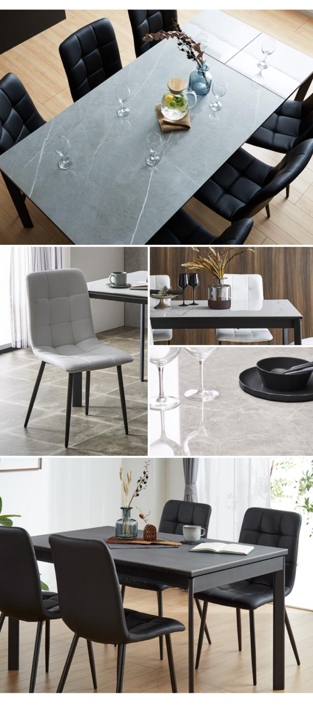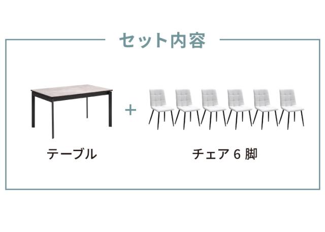 セラミック 伸縮 ダイニングセット 6人掛け 7点セット ダイニングテーブルセット 伸長式 幅130~幅170 合皮 アイアン 鏡面 ダイニングチェア 耐水 耐熱 大理石調(代引不可)【送料無料】