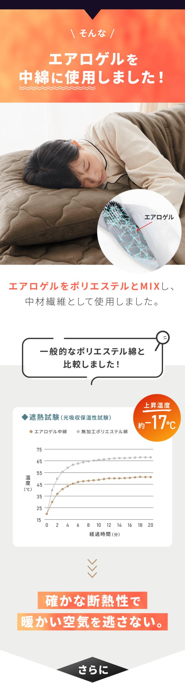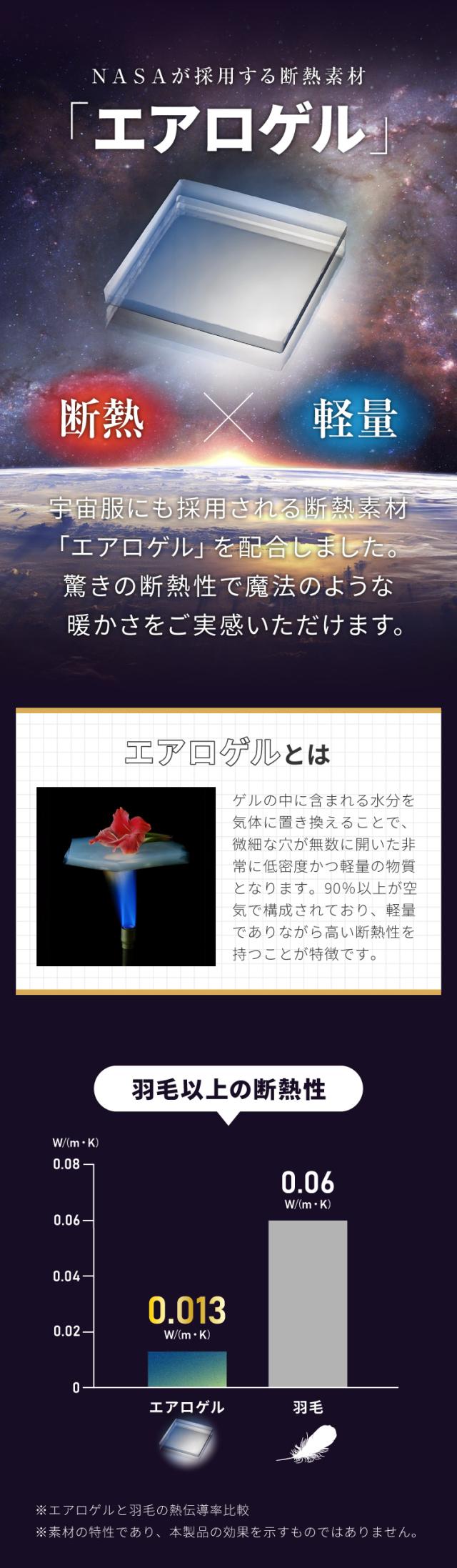 中材にはエアロゲル繊維に加えて蓄熱綿もミックス。