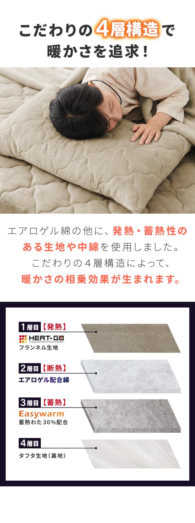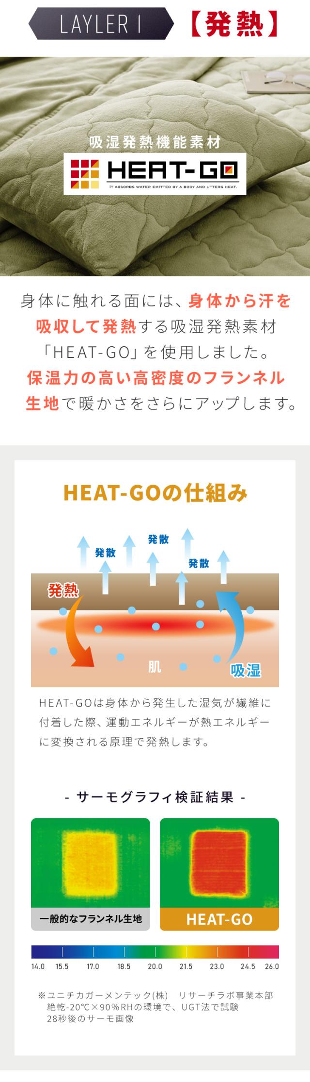 側生地に吸湿発熱生地のHEAT-GOフランネル生地を使用して保温力が格段UP。
