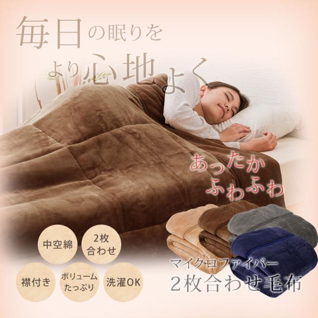 2枚合わせ毛布 中綿入り シングル マイクロファイバー あったか 掛け布団 毛布 布団 掛布団【送料無料】