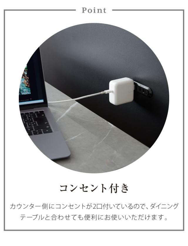 カウンターの前面には携帯電話やタブレットなどの充電ができる便利なコンセント付き。