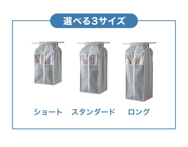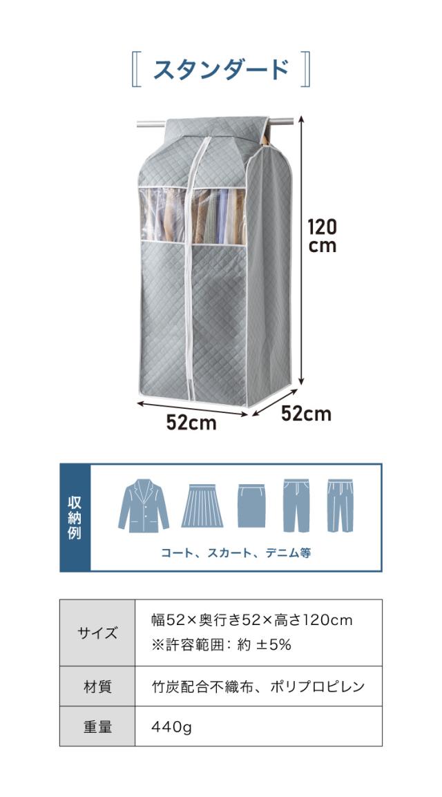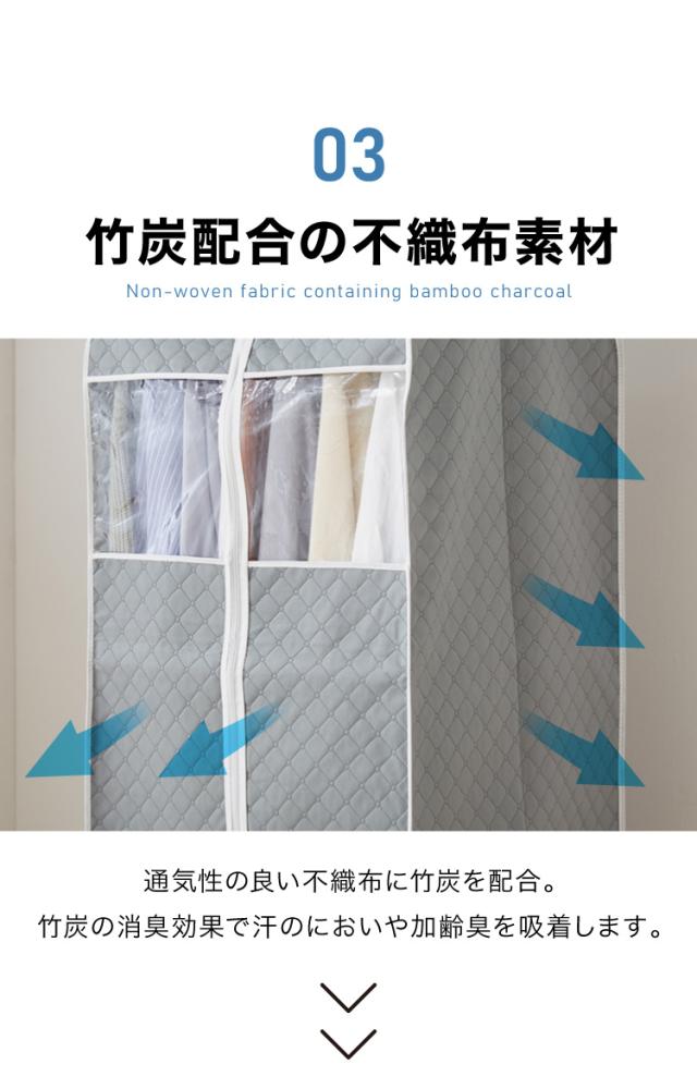 衣類カバー 不織布 ワイド ロング スタンダード ショート マチ付き 竹炭入り はっ水 グレー ダブルスライダー 消臭 調湿 洋服カバー 衣装カバー 洋服ケース 衣類収納 クローゼット収納 ほこ