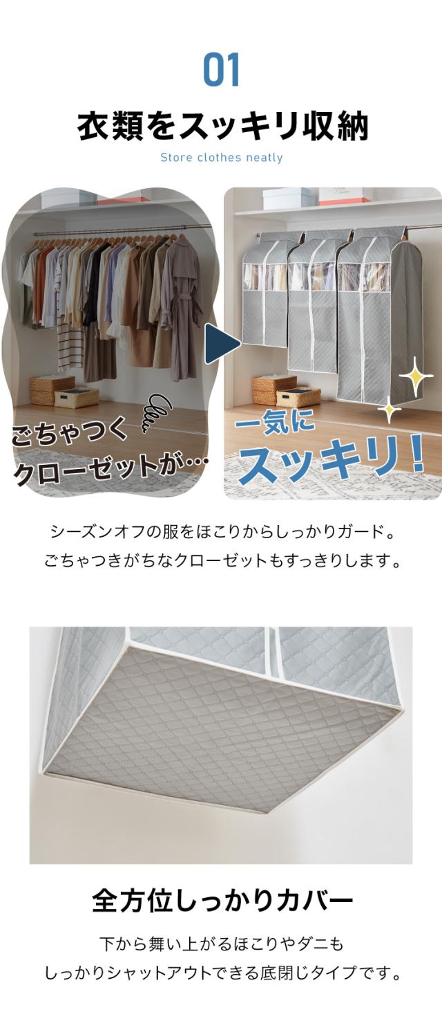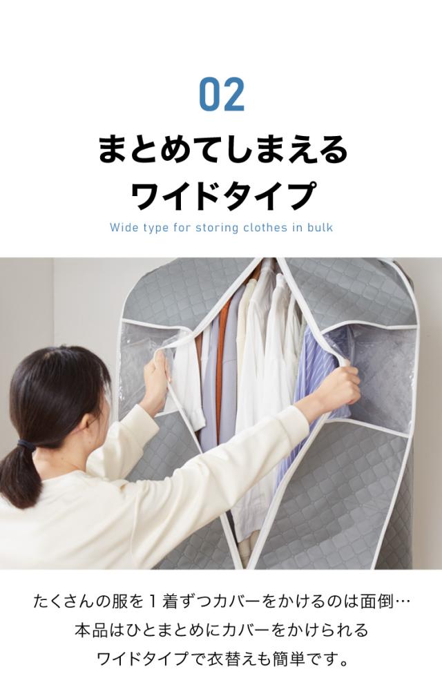 ニット、スーツ、ワンピース、コート、ダウン、ジャケット、防虫、ユニットカバー、まとめて収納、カバー、服、キルティング、ダニ除け、衣装ケース、保護、防虫、虫除け、収納袋、ダストカバー、洋服バッグ、洋服ダストカバー、ハンガーラックカバー、大容量、ワイド、取り付け簡単