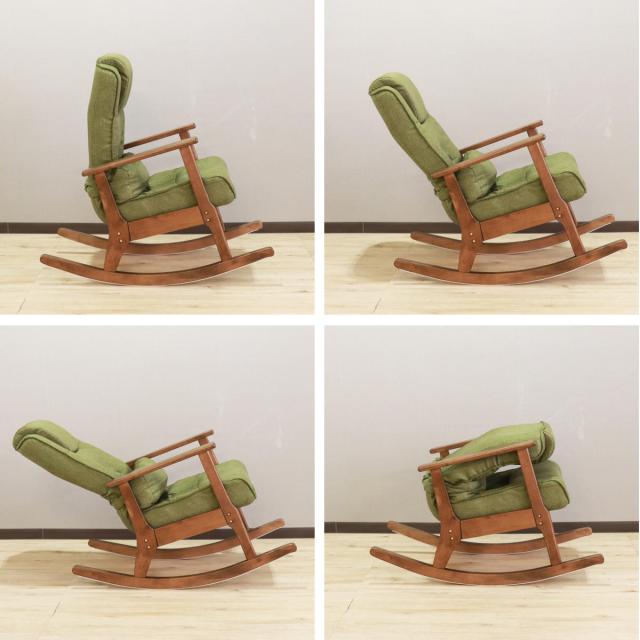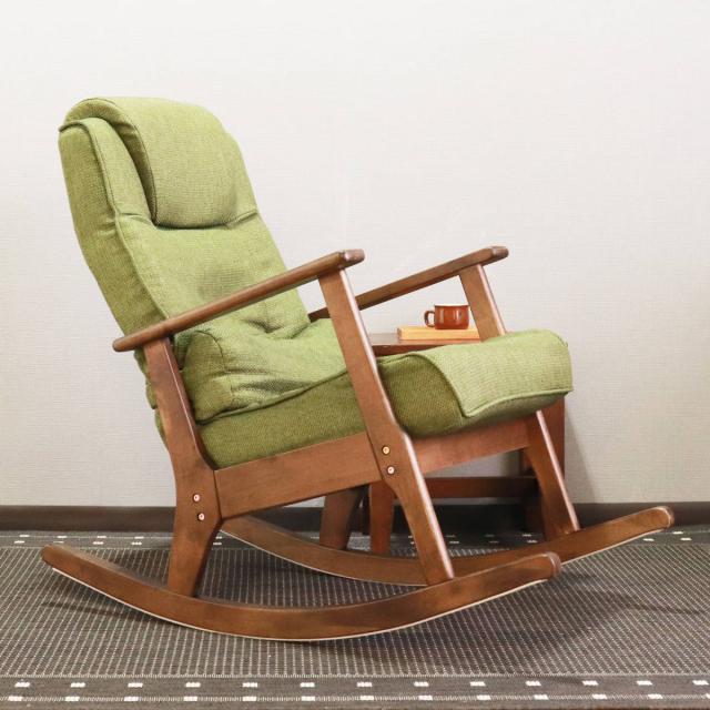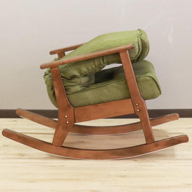 ゆらゆらと揺れながら、心地よくリラックスタイムを楽しめるロッキングチェアです。ひとり時間のお供に最適です。明るすぎないグリーンカラーでお部屋を落ち着いた雰囲気にしてくれます。