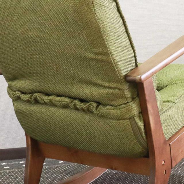 背中や腰などお好みの位置で使える、着脱できるクッションが付いています。また、肌触りがサラサラの張地を使用しており、オールシーズン快適にご使用いただけます。