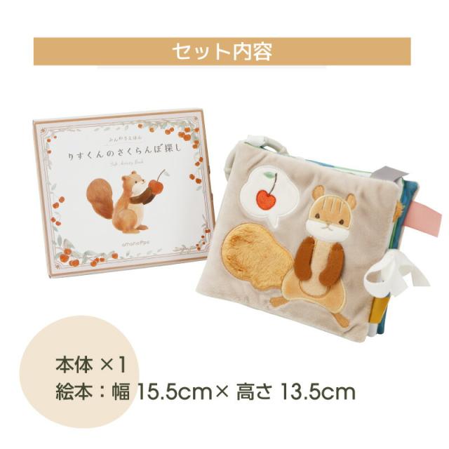 出産祝い 名入れ 絵本 ふんわりえほん りすくんのさくらんぼ探し cocory friends 翌々営業日出荷 0歳 1歳 知育玩具 誕生日 ベビー おしゃれ かわいい 男の子 女の子 ギフトセット プレゼント ギフト 布絵本 安全 安心 送料無料