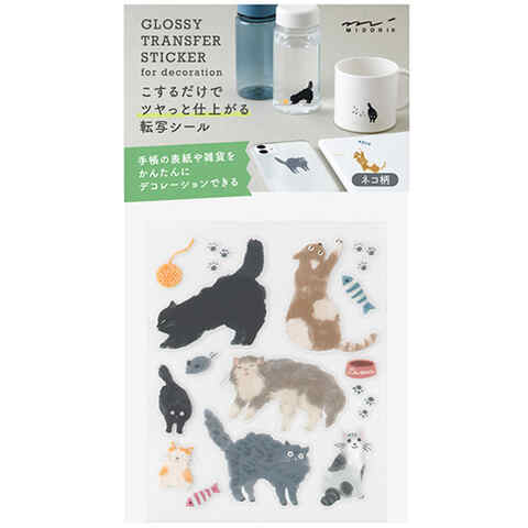 転写シール ツヤ ネコ柄 アクリル樹脂 手帳 雑貨 ガラス プラスチック ステンレス 簡単 デコ かわいい 日本製 ミドリ 送料無料