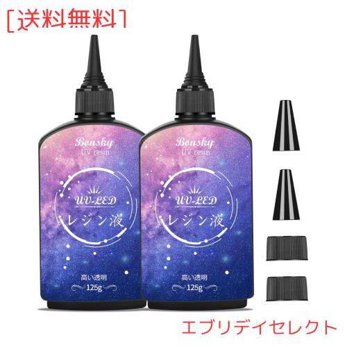 パッケージ内容:Bonsky UVレジン液 125g*2、尖ったボトルキャップ*2、アルミフィルム封止 オープナー*1、取扱説明書。ご質問がございましたら、お問い合わせください。