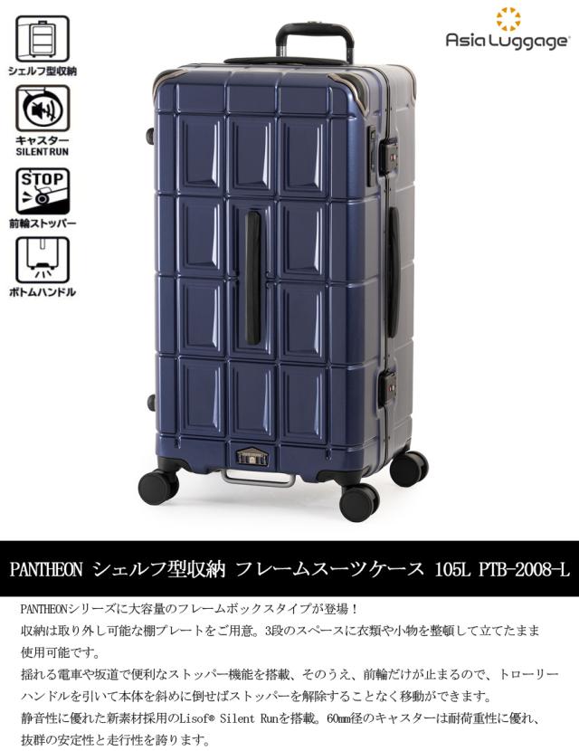 【特大サイズ※無料預入不可】【送料無料】アジアラゲージ パンテオン シェルフ型収納 フレームスーツケース PTB-2008-L 105L フレームボックスタイプ 大容量 静音キャスター