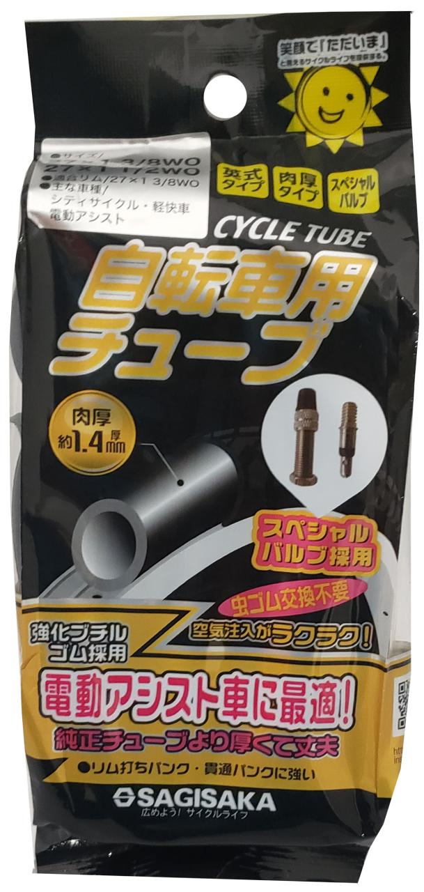 自転車 チューブ 楽スーパーチューブ 27インチ WO 27x1 3/8 英式 虫ゴム不要タイプ 電動アシスト自転車 サギサカ