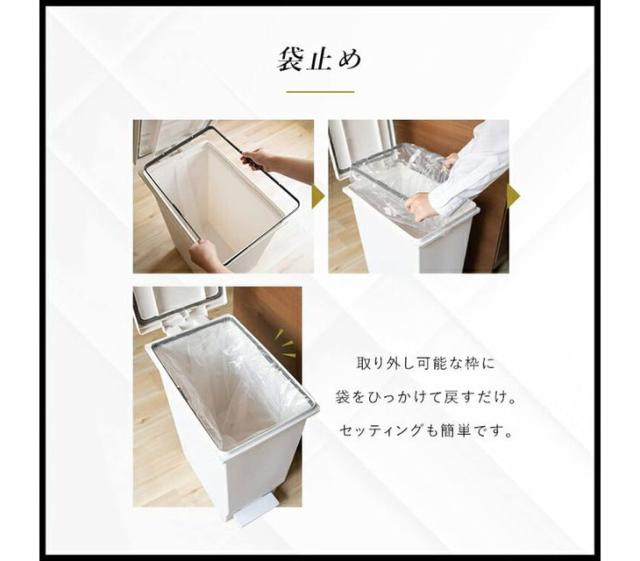 | 材質 | フタ・本体・袋止め・ペダル:ポリプロピレン、ペダルロッド:スチール、パッキン:ポリエチレン |