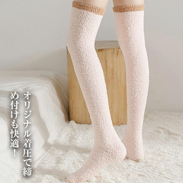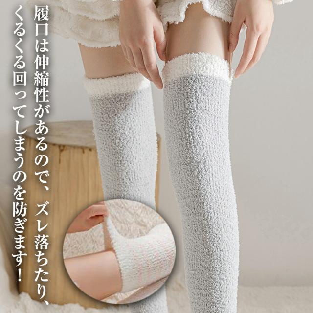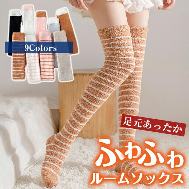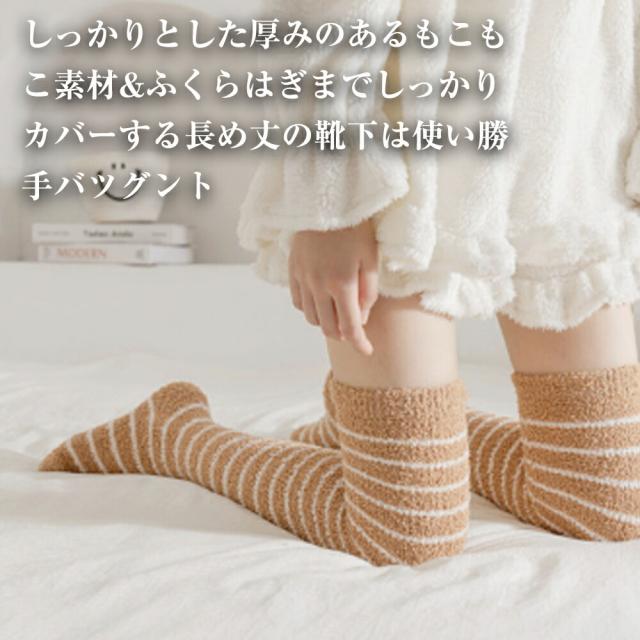 ニーハイソックス ルームソックス もこもこ ハイソックス 靴下 ソックス レディース ロングソックス ソックス ふわふわ 可愛い 暖かい ボーダー バレンタインデー プレゼント ギフト