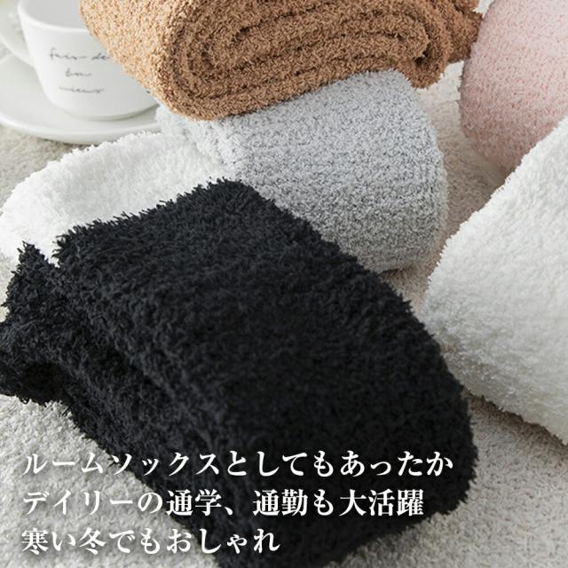 もこもこソックス:もこもこした質感は表裏両方に採用、膝までしっかりカバーする長め 丈の靴下は使い勝手抜群。