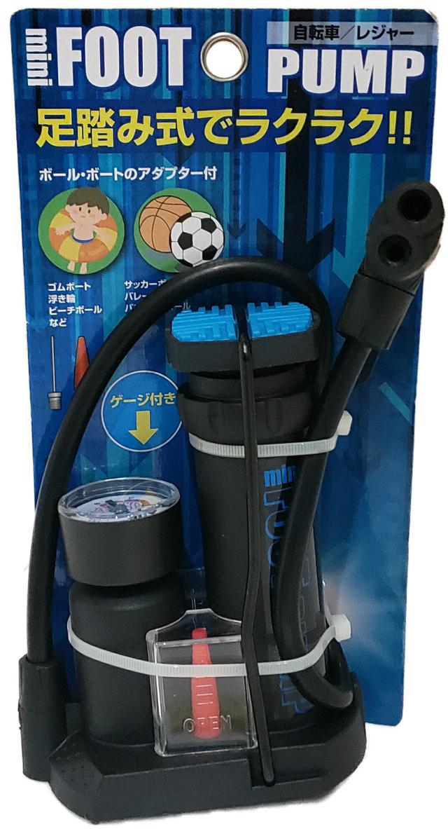 自転車 空気入れ ゲージ付き ミニフットポンプ 英式 米式 通勤 通学 EV AV ママチャリ シティサイクル MTB 空気圧 コンパクト ボール うきわ ノズル付 サギサカ