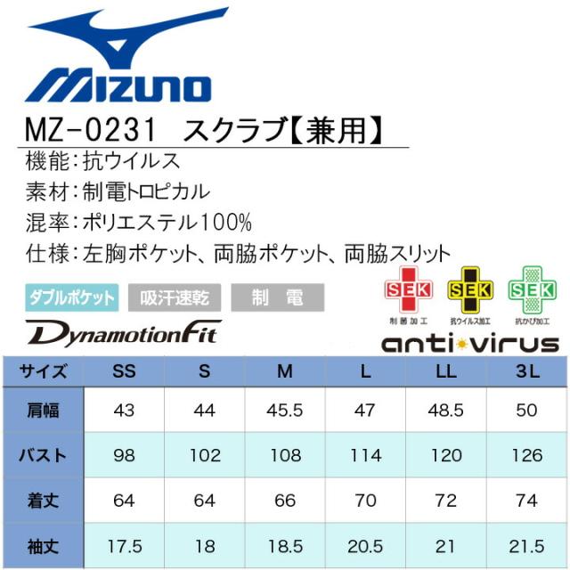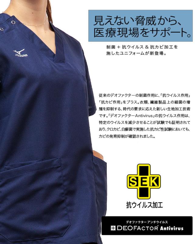 ミズノ スクラブ 白衣 医療 抗ウイルス加工 男女兼用 MIZUNO MZ-0231 ドクタークリニック デンタルクリニック 整体 動物病院 介護施設 ナース チトセ 術衣 抗ウイルススクラブ ネイビー ワイン