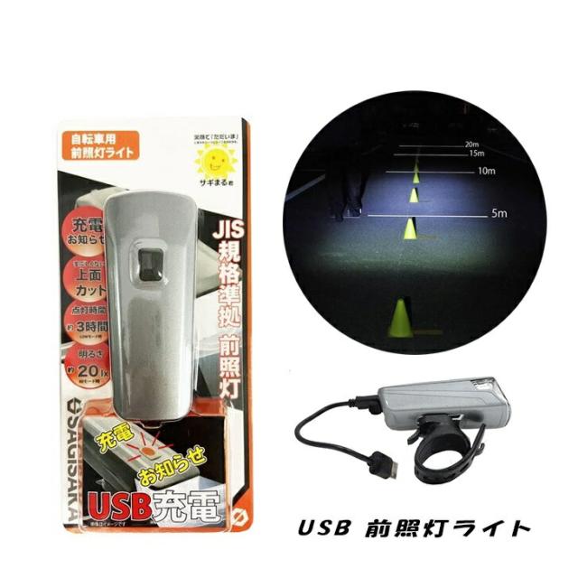 自転車 ライト 後付け 充電式 サギサカ 1LED ライト 20lx シルバー フロント ハンドル USB充電式