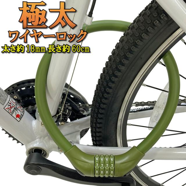 自転車 鍵 ワイヤー 極太 4桁 ダイヤルロック 60cm 18mmワイヤー カーキ ロック カギ サギサカ