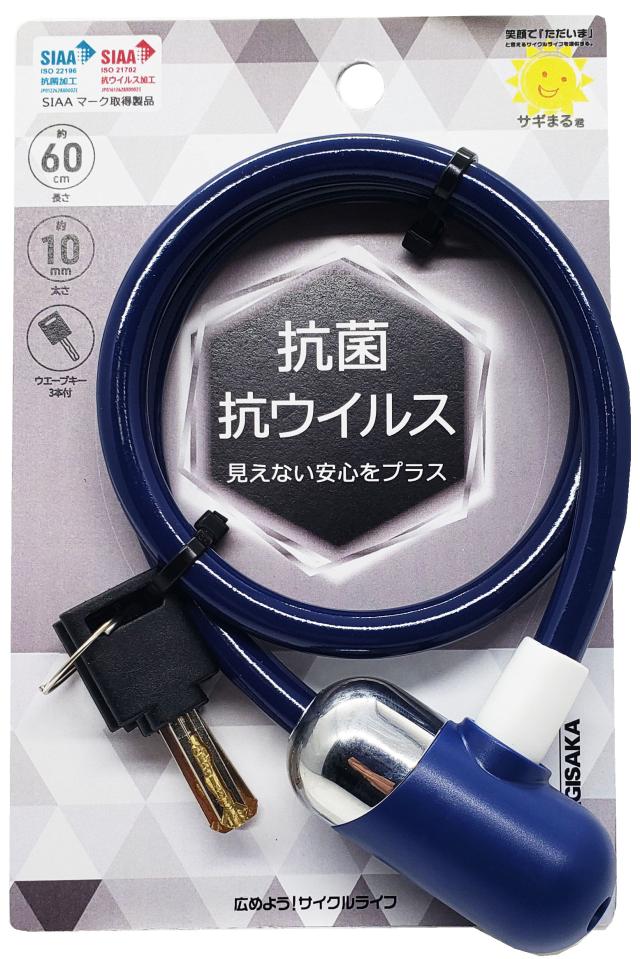 自転車 鍵 ワイヤー 抗菌ワイヤーロック ウェーブキー 60cm ネイビー ロック カギ 軽量 サギサカ