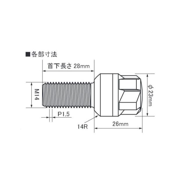 【補充パーツ】 ブルロックタスキーボルト ロックボルト単品 M14×P1.5 14球面座 首下長さ28mm ブラック KYO-EI YTF8A228