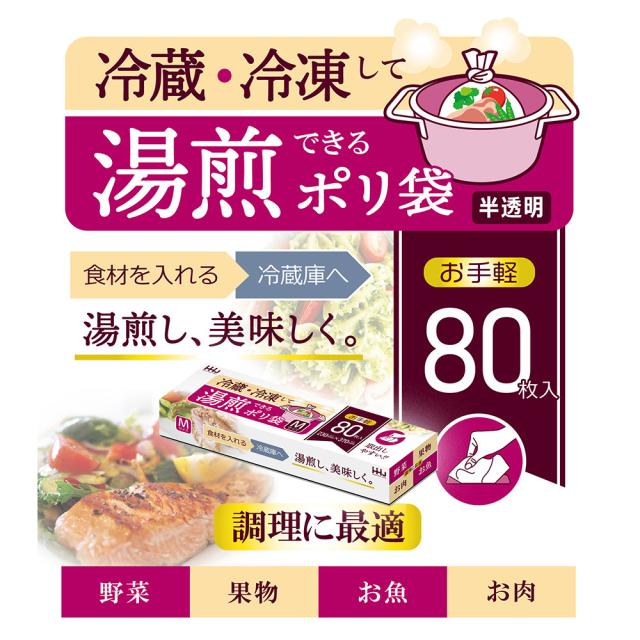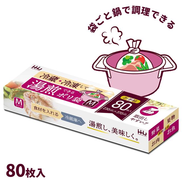 冷蔵・冷凍して 湯煎できるポリ袋 Mサイズ 80枚入 KY02 | 湯せん ゆせん 調理 料理 食材 食品 茹でる 野菜 果物 魚 お肉 熱湯 簡単調理 防災 時短料理 便利 保存 災害 キッチン 節水
