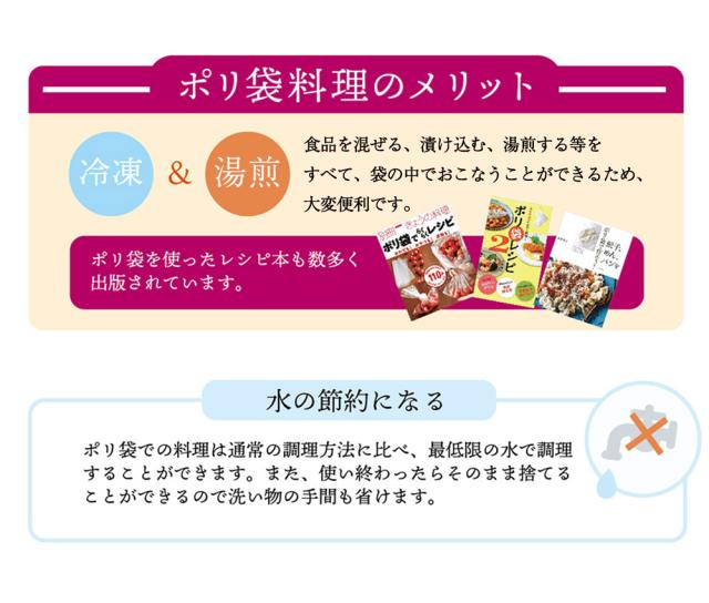 ビニール袋 耐熱 調理用 冷蔵用 台所 冷凍対応 ポリ袋調理 災害備蓄 防災用品 加熱調理用 食品用 漬け込み用 下味冷凍 真空調理 食材保存 混ぜるだけ 袋ごと 湯煎 時短レシピ 家事時短 家事ラク 家事楽 家事効率化 一人暮らし 新生活 自炊 ズボラ料理 ズボラ家事 ポリ袋レシピ 洗い物減らす 時短料理 使い捨て そのまま捨てる 食洗機不要 片付けラク 作り置き 作り置き冷凍 作り置きおかず 冷凍総菜 小分け冷凍保存 食材ストック 冷凍ストック 便利グッズ 便利アイテム キッチン用品 キッチングッズ 台所用品 台所グッズ 防災グッズ 災害時 4580287322720