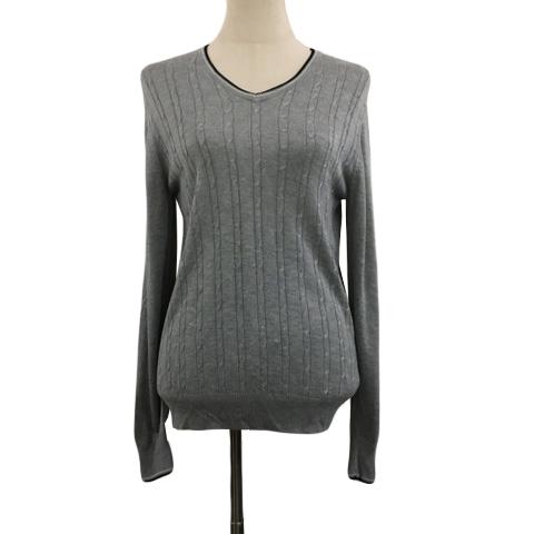 【中古】コムサイズム セーター ニット プルオーバー Vネック 無地 ケーブル 薄手 長袖 M グレー 黒 ブラック